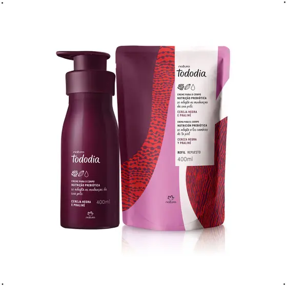 Kit de crema cereza negra y praline: Refil + envase regular