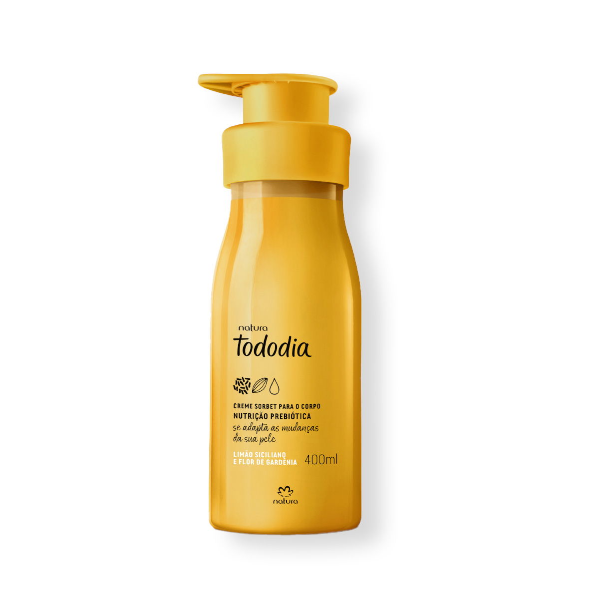 ¡La crema nutritiva Tododia Limón Siciliano y Flor de Gardenia tiene ese efecto frío que a todos les encanta! Perfecto para aliviar la sensación de calor. Su fórmula con nutrición prebiótica recupera inmediatamente la piel de las agresiones del mar y la pileta. Para potenciar su efecto refrescante, simplemente dejala enfriar en la heladera unos minutos antes de usarla y disfrutá de una experiencia única para tu piel. Frescura todo el día, todos los días. Hecho en Brasil. Vegano.